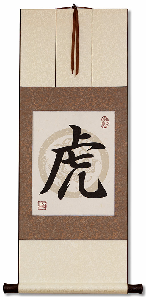 I can print this larger, on the paper texture of your choice, and give you whatever silk brocade colors you want. Ready-to-frame prints can be delivered in a few days. However, it does take several weeks for custom wall scrolls. Either way, it's worth the wait if you want something really custom and unique.