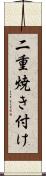 This adds strips of fancy gold ribbon above and below the characters on the xuan paper.