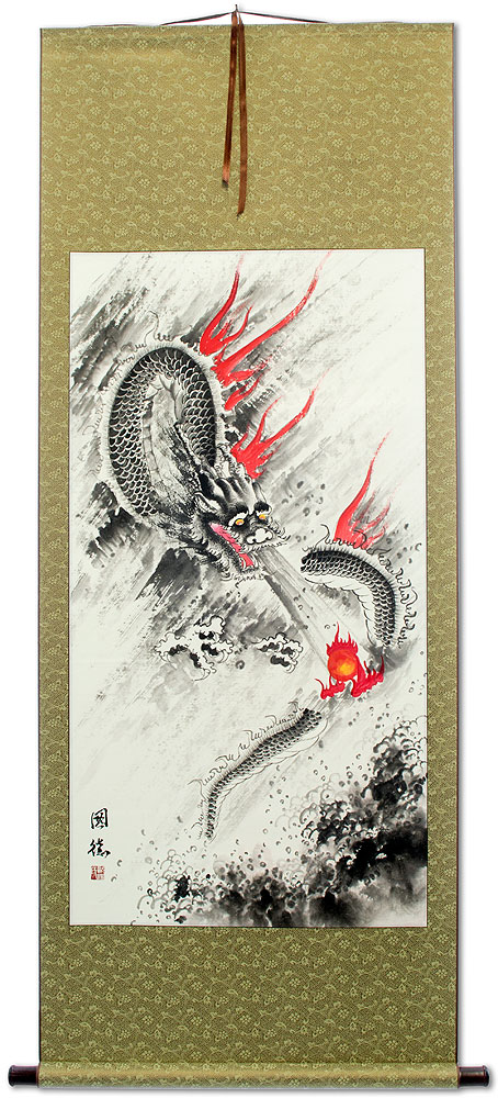 This is a very cool antique-style dragon wall scroll. The dragon is painted handmade xuan paper.