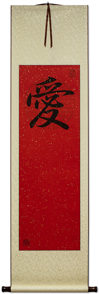 Information about caring for your wall scrollThis special guest book wall scroll features a giclee printed love symbol with a subdued longevity symbol in the background to wish the receiver plenty of love during a very long future life.